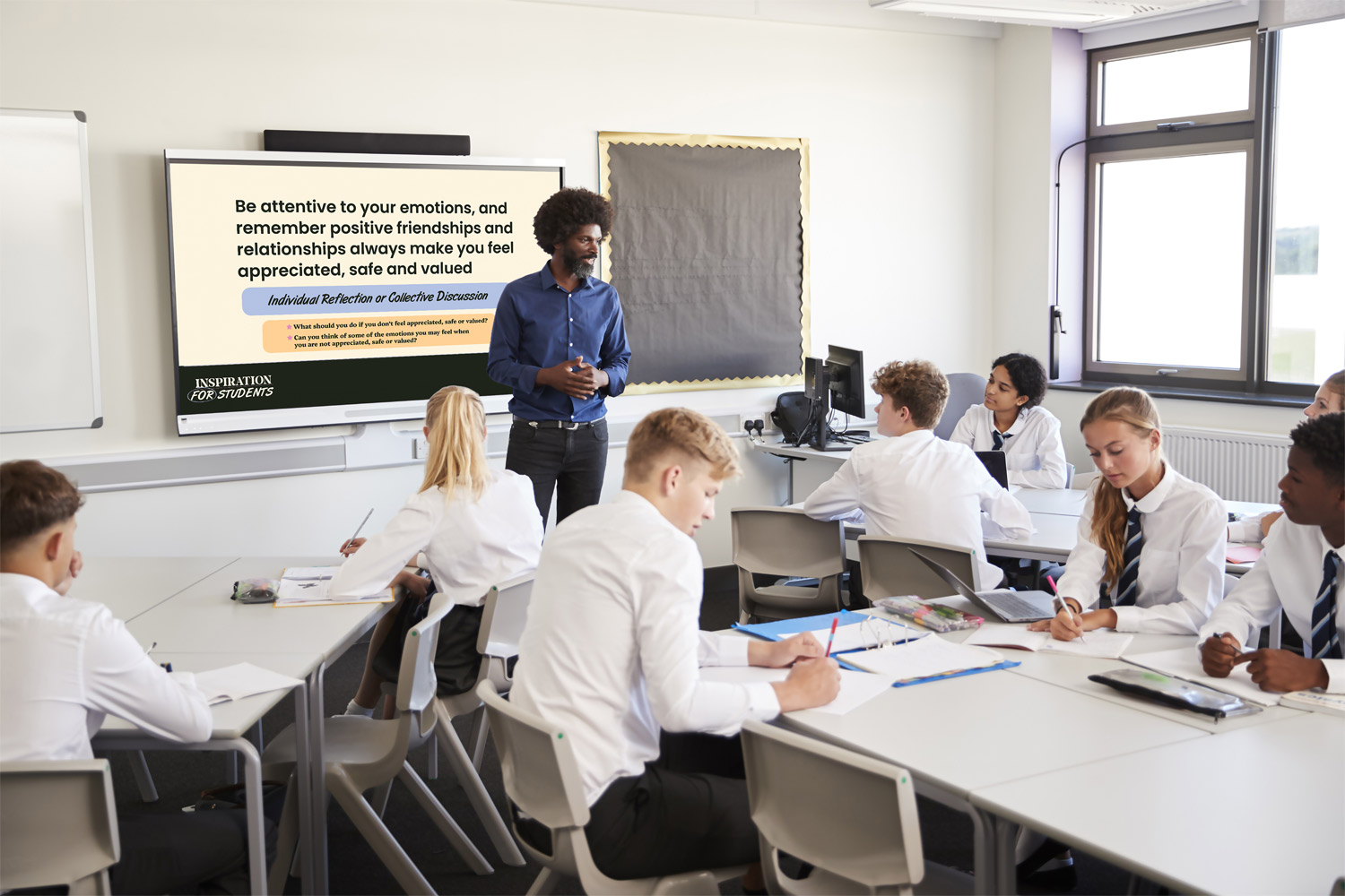 Display them on a large digital screen, for example at entry and exit points, in the classroom (during tutor times/drop-down days), or at the end of term or academic year assemblies. A small selection of the expressions, have been designed for display as a wallpaper on a mobile phone.
